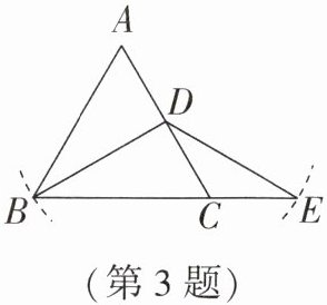 3. 如图,BD是等边三角形ABC的边AC上的高,以点D为圆心,DB长为半径作弧交BC的延长线于点E,则$∠DEC= $ ()