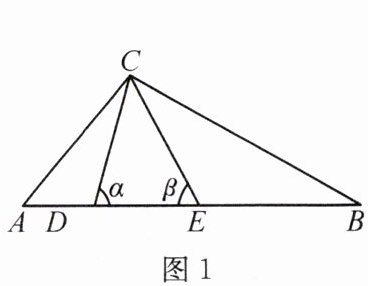 13. (1)如图1,在△ACB中,∠BCD = ∠BDC = α,∠ACE = ∠AEC = β,∠DCE = 40°,求∠ACB的大小;