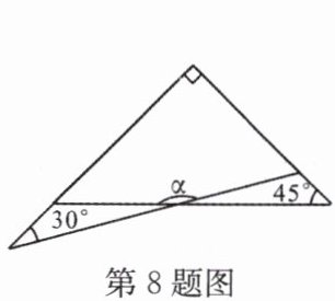 8. (2023·江西)一副三角板有两个直角三角形,如图叠放在一起,则$\angle \alpha$的度数是(