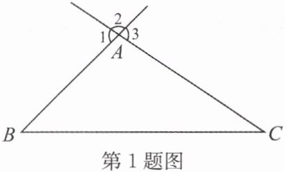 1. (2023·西藏)如图,$\angle 1,\angle 2,\angle 3中是\triangle ABC$外角的是(