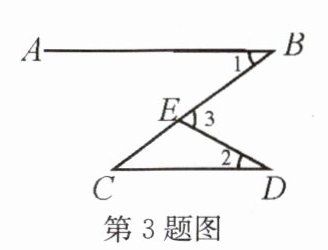 3. 如图,$AB// CD$,点$E在线段BC$上,若$\angle 1= 40^{\circ},\angle 2= 30^{\circ}$,则$\angle 3$的度数为