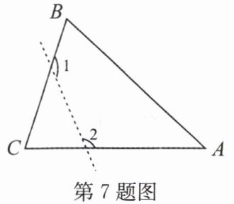 7. (2023·昆明)如图,在$\triangle ABC$中,$\angle C= 80^{\circ}$,沿图中虚线截去$\angle C$,则$\angle 1+\angle 2= $(