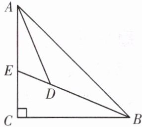 16. 如图,在$\triangle ABC$中,$\angle C= 90^{\circ},\angle CAB,\angle CBA的平分线相交于点D$,$BD的延长线交AC于E$,求$\angle ADE$的度数。