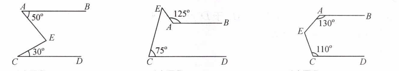 14. 如下三图,$AB// CD$,求$\angle AEC$的大小。(平行凸凹型)