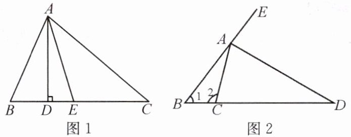(2)如图2,△ABC中,∠BAC外角平分线交直线BC于D点,∠2-∠1= 52°,求∠ADB的大小.