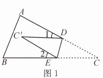 ,说明理由;(2)当C'点落在△ABC外部时,∠1-∠2= 72°时,则∠C= ____