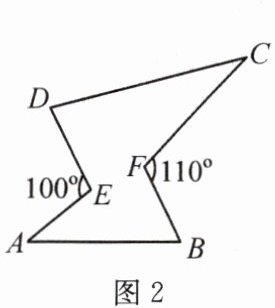 变式2.如图2,若$\angle AED= 100^{\circ },\angle BFC= 110^{\circ }$,则$\angle A+\angle B+\angle C+\angle D= $