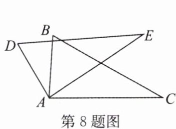8.如图,将$\triangle ABC绕点A旋转得到\triangle ADE$,若$\angle B = 40^{\circ}$,$\angle E = 30^{\circ}$,则$\angle DAE$的度数为(