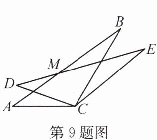 9.如图,$\angle ACD= \angle BCE= 20^{\circ}$,$CA= CD$,$CB= CE$,$AB与DE相交于点M$,则$\angle BME$的度数为____