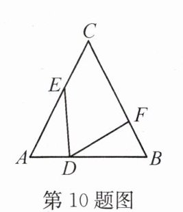 10.如图,$\triangle ABC$,$\angle A= \angle B$,点$D在AB$上,$\angle EDF= \alpha$,交$AC于点E$,$BC于点F$,$AD= BF$,$AE= BD$,则下列结论正确的有____
