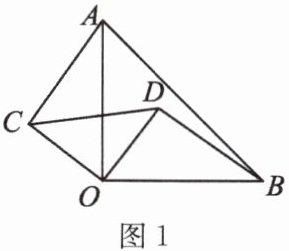 解:$\triangle AOC\cong\triangle BOD(SAS)$,$\therefore AC=BD$,$\angle CAO=\angle OBD$,$\therefore BD\perp AC$。
