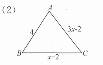 (2)$\left\{\begin{array}{l} 3x-2+x+2>4,\\ 4+x+2>3x-2,\\ 3x-2+4>x+2,\end{array}\right. $