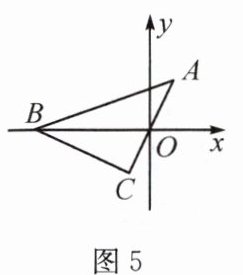 变式1.如图5,$△ABC$在平面直角坐标系中,$∠ACB= 90^{\circ },AC= BC$,O是AC的中点,点A的坐标是$(1,2)$,则点B的坐标为______
