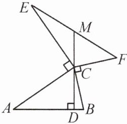 变式5.如图,$AC= CE$,$AC\perp CE$,$CB= CF$,$CB\perp CF$,$CD\perp AB于D$,延长$DC交EF于M$点.求证:$EM= MF$.