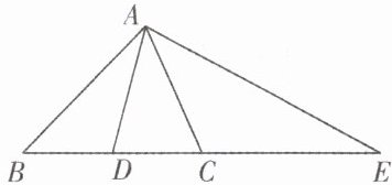 变式 3.如图,$AD$ 是 $\triangle ABC$ 的中线,点 $E$ 在 $BC$ 的延长线上,$CE = AB$,$\angle BAC = \angle BCA$,求证:$AE = 2AD$。