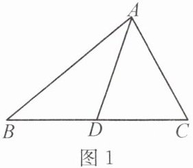 变式 1.如图 1,$\triangle ABC$ 中,$D$ 为 $BC$ 的中点。$AB = 5$,$AC = 3$,则 $AD$ 的取值范围为