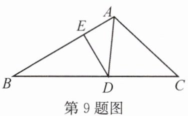 9.如图,$AD是△ABC$的角平分线,$DE⊥AB于点E$,$S_{△ABC}= 7$,$DE= 2$,$AB= 4$,则$AC$长是____