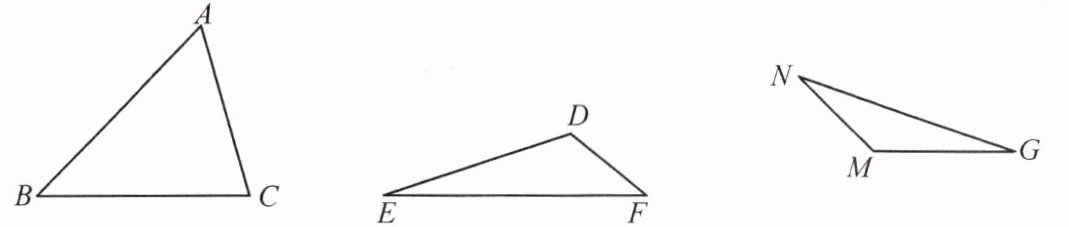 7.如下三图,已知△ABC和△DEF,△MNG,在图中分别画出这三个三角形的三条高.