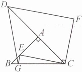 变式3.(2025·阳逻)在$\triangle ABC$中,$AB= AC,\angle BAC= 90^{\circ}$,E是线段AB上一点,$CE\perp CF$,且$CE= CF$,过点F作$FD\perp FC$交CA的延长于点D,过点E作$EG\perp EC$交BC于点G,连接DG.若$DF= 7,EG= 1$,求DG的长.