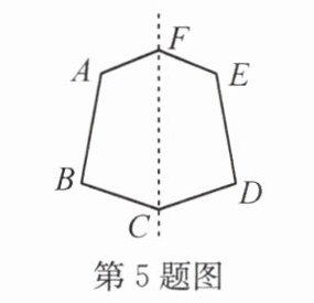 5.如图,六边形$ ABCDEF $是轴对称图形,$CF $所在的直线是它的对称轴,若$∠AFC+∠BCF= 150^{\circ }$,则$∠AFE+∠BCD$的大小是(