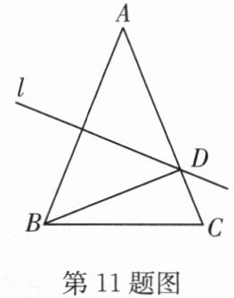 11.(教材题变式)如图所示,在$△ABC$中,$AB= AC= 5cm$,$BC= 3cm$,点$ A 和 B 关于直线 l $对称,$l 与 AC 相交于点 D$,则$△BDC$的周长是____