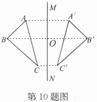10.(2022·青岛)如图,$△ABC与△A'B'C'关于直线 MN $对称,$BB'交 MN 于点 O$,则下列结论不一定正确的是(