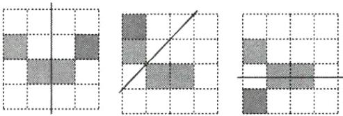 13.如图,是由三个阴影的小正方形组成的图形,请你在三个网格图中,各补画一个有阴影的小正方形,使补画后的图形为轴对称图形,并画出对称轴.