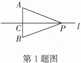 1.如图,A,B两点关于直线l对称,AB交直线l于C,P为l上一点,则$∠ACP= $