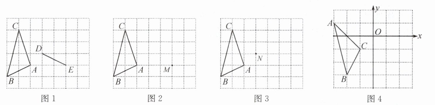 (2)如图$4$,①作$\triangle ABC关于y轴对称\triangle DEF$;②作$CN\perp DE交DE于N$点;③作$N点关于y轴对称点M$。