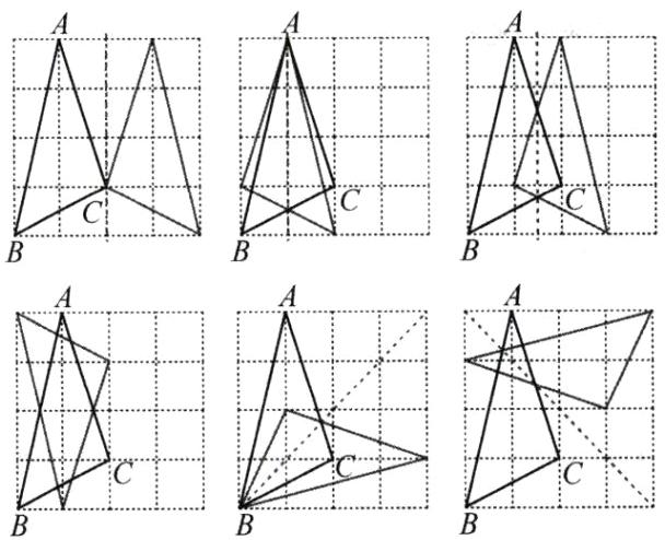 6.如图,在$4× 4$的正方形网格,图中与$\triangle ABC$关于某条直线轴对称的格点三角形有____个。