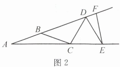 变式 1.如图 2,$∠A= 20^{\circ }$,点 B,D,F 和 C,E 分别在$∠A$的两边上,且$AB= BC= CD,EC= ED= EF$,则$∠DEF= $