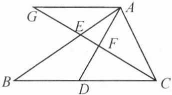 因为$\angle ACB = 2\angle B$,$\angle ACB=\angle CAD+\angle ADC$,$\angle ADC=\angle B+\angle BAD$,$\angle CAD=\angle BAD$(由$\triangle ACF\cong\triangle DCF$及$AG// BC$可推得)。