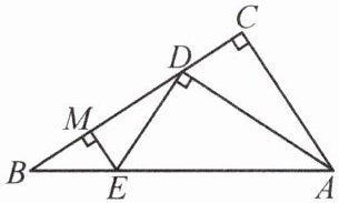 方法 1(补短法):过 B 点作 $ BH \perp DE $ 交直线 DE 于 H 点,证 $ \triangle BEM \cong \triangle BEH $, $ \triangle ACD \cong \triangle DHB $, $ \therefore AC = DH = DE + EM $.