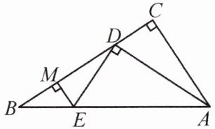 连 BM,AM,则 $ \triangle DCA \cong \triangle DMA $, $ \therefore AM = AC = AB $, $ \therefore \angle ABM = \angle AMB $, $ \therefore \angle EMA = 45^\circ = \angle ABE $, $ \therefore \angle EBM = \angle EMB $, $ \therefore BE = EM $,