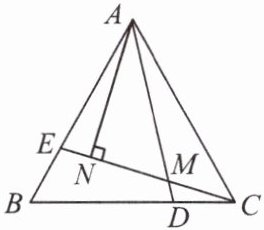 13.如图,在等边$\triangle ABC$中,$D$,$E分别在BC$,$AB$上,连接$AD$,$CE交于点M$,$BE = CD$.