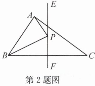 2.如图,在$\triangle ABC$中,$AB= 3$,$AC= 4$,$EF垂直平分BC$,点$P为直线EF$上的任一点,则$AP+BP$的最小值是(