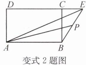 变式2.如图,长方形$ABCD$面积为6,点$E在DC$的延长线上,连接$BE$,$P为BE$中点,则$S_{\triangle ABP}$的面积为(