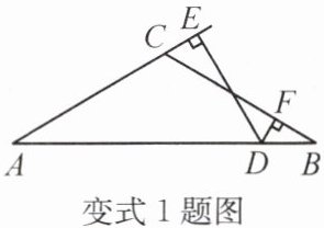 变式1.如图,在$\triangle ABC$中,$CA= CB= 4$,$S_{\triangle ABC}= 6$,点$D在AB$上,$DE⊥AC$,$DF⊥BC$,垂足为$E$,$F$,则$DE+DF= $