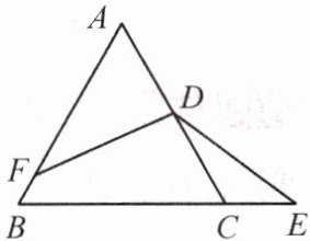 【典例】(教材 P93T13 变式)如图,D 是等边$\triangle ABC$的 AC 边的中点,F 在 AB 上,E 在 BC 的延长线上,且$∠FDE= 120^{\circ }$.