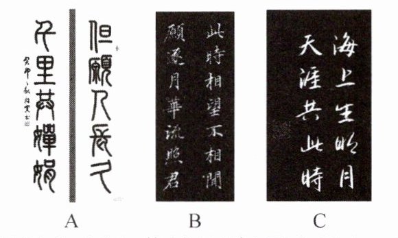 两句有异曲同工之妙。(要求:书写B、C作品中的诗句需遵循现代汉语书写顺序;需用简化楷体正确、工整、规范抄写)