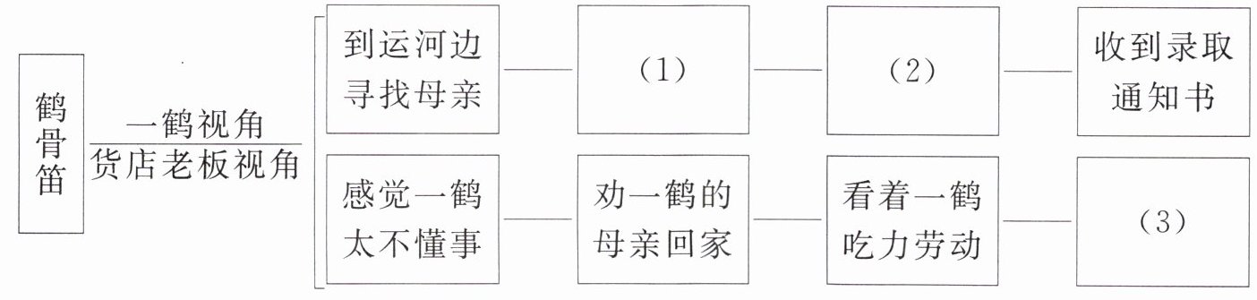 6.【梳理情节】请分别从一鹤与货店老板的视角梳理小说情节,补全下面的流程图。(3分)