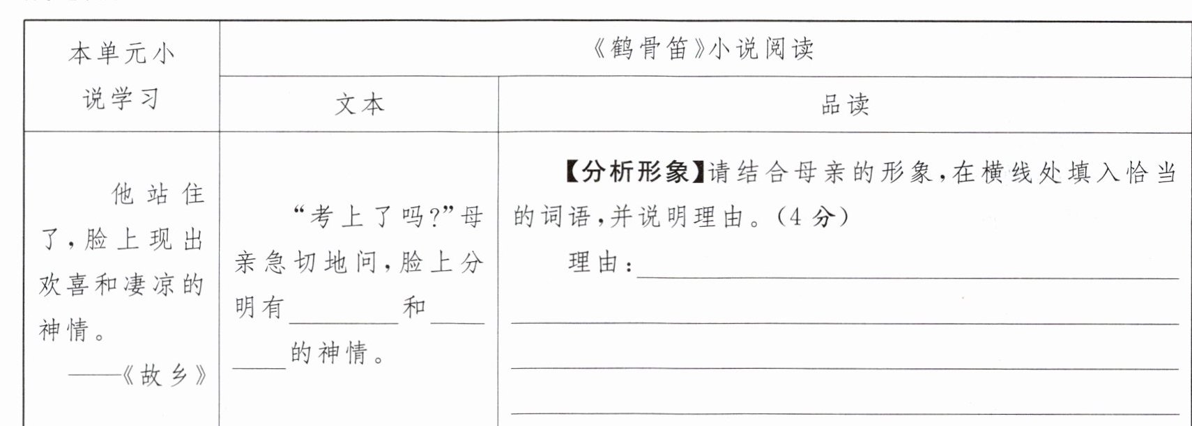 9.【探究深义】“一鹤”的名字给同学们留下深刻印象,请结合小说和助读材料,向大家分享你对“一鹤”这个名字的理解。(4分)