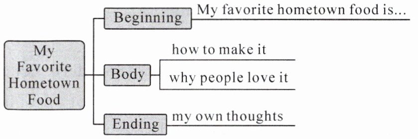 4. 写作要点:①你最喜欢的家乡特色美食是什么;②它是如何制作的;③为什么当地人喜欢它
