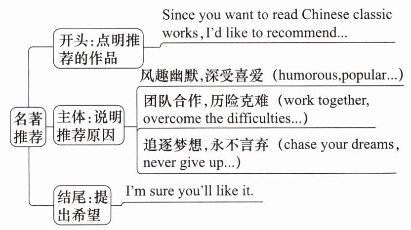 开头:点明推荐的作品 Since you want to read Chinese classic works,I'd like to recommend...