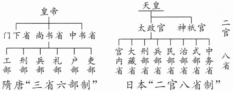 3. 下图为大化改新后的日本官僚体制与同时期唐朝三省六部制的比较,由此可见,日本(