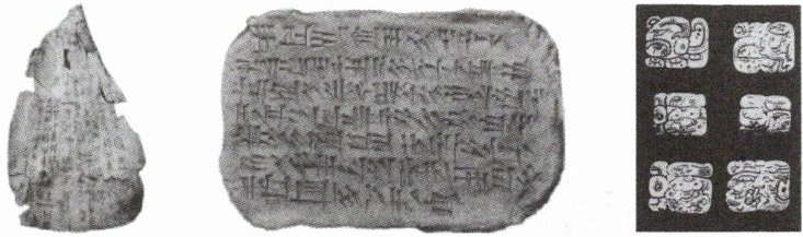 7. 下图文字从左至右分别为甲骨文、楔形文字、玛雅文字。下列选项对其解读正确的是(