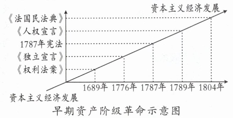 论述:为了限制国王权力,1689年,英国议会通过《权利法案》,此后,英国议会的权力日益超过国王,君主立宪制逐渐形成,为英国资本主义的发展开辟了道路,对世界近代历史的发展产生了深远影响。1804年,拿破仑主持制定了《拿破仑法典》,这些法律文献体现了资产阶级的自由平等思想和私有财产神圣不可侵犯等原则,保障了资产阶级利益,促进资本主义经济的发展。(4分)