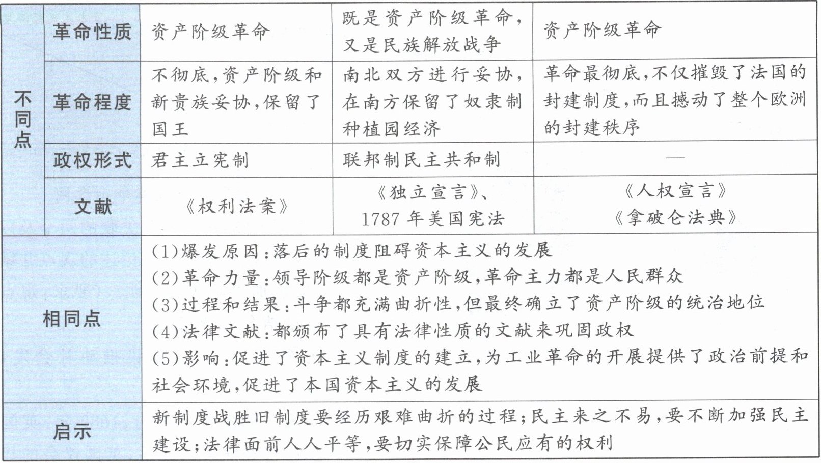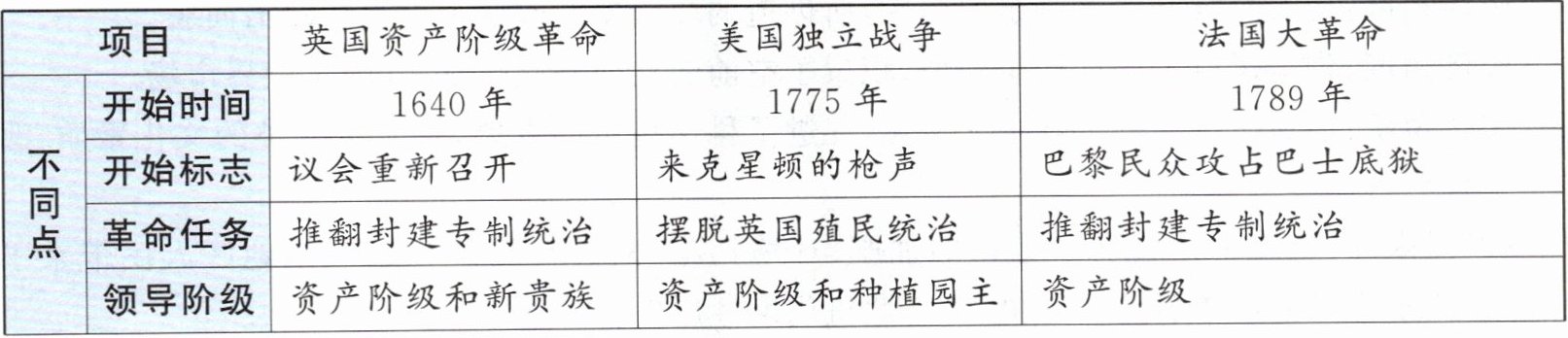 项目 英国资产阶级革命 美国独立战争 法国大革命