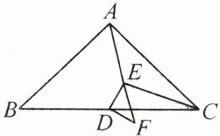 13. (2025·青羊)如图,$\triangle ABC和\triangle DEF$都是等腰直角三角形,$∠BAC = ∠EDF = 90^{\circ}$,D为BC中点,连接AE,CE,$∠AEC = 120^{\circ}$,则$\frac{DE}{AE}$的最小值为____.