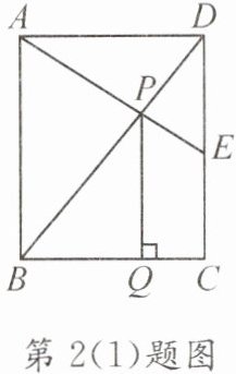 2. (1) (2025·编写) 如图,在矩形$ABCD$中,$AB= 2$,$BC= \sqrt {2}$,$E为CD$的中点,连接$AE$,$BD交于点P$,过点$P作PQ⊥BC于点Q$,则$PQ= $____。
